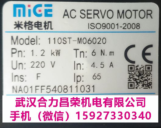 武汉合力昌荣机电现货销售杭州米格伺服电机110ST-M04030 1.2KW 4NM