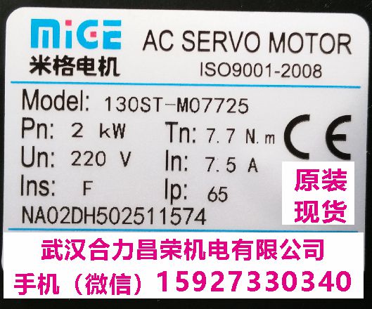 武汉合力昌荣机电现货销售杭州米格伺服电机130ST-M07725 2KW 7.7NM